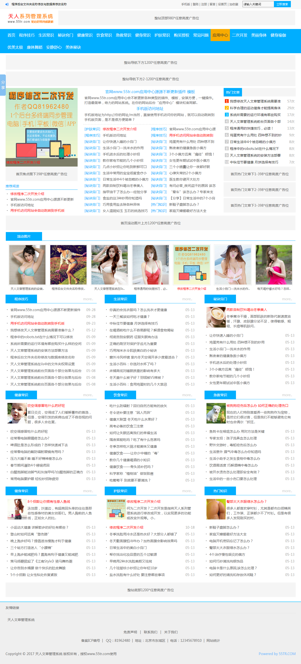 后台应用中心可安装,模板、扫码打赏插件、手机版与电脑版智能管理插件、屏蔽复制与鼠标右键插件、老y文章系统数据迁移至天人工具、OK3W文章系统数据迁移至天人工具、用户注册后自动登录插件、悬浮贴边客服插件、会员前台全功能编辑器插件、广告可视化管理插件、前台底部自定义内容插件、畅言、友言、多说万能评论插件、电脑版整站背景图插件、万能伪静态规则生成插件、手机版广告插件、手机版内容阅读权限插件、QQ登录插件等等