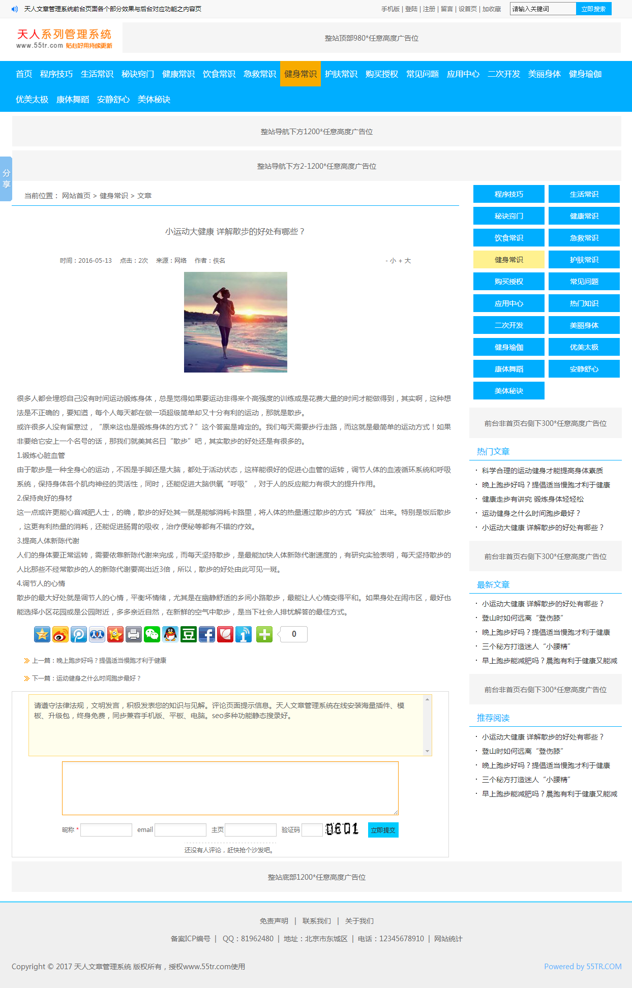 >天人文章管理系统功能介绍 如对默认模板不满意,在后台可更换其他模板。