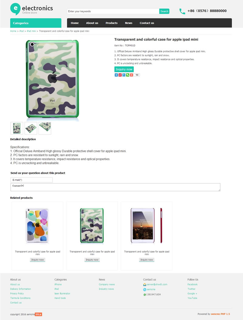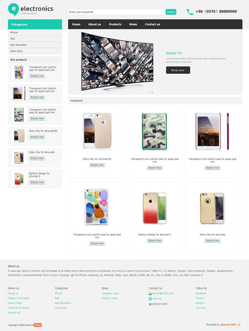 SemCms非常适合在外贸企业,电子商务互联网应用上使用,2009年12月首次发布以来,SemCms依靠出色的用户体验和领先的技术不断扩大外贸场占有率,目前在国内已经成为最受欢迎的英文外贸网站之一。