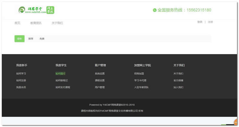 YxtCMF在线学习系统是一个以thinkphp+bootstrap为框架进行开发的网络学习平台系统。