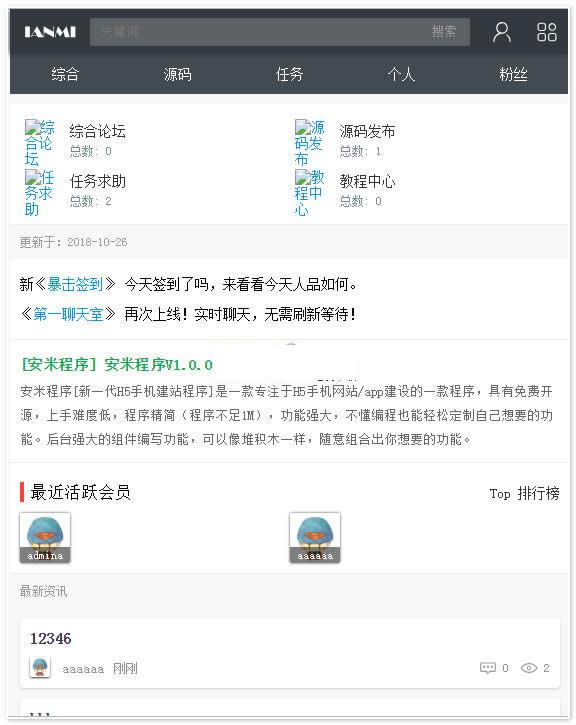 安米程序[新一代H5手机建站程序]是一款专注于H5手机网站/app建设的一款程序,具有免费开源,上手难度低,程序精简(程序不足1M),功能强大,不懂编程也能轻松定制自己想要的功能。后台强大的组件编写功能,可以像堆积木一样,随意组合出你想要的功能。
