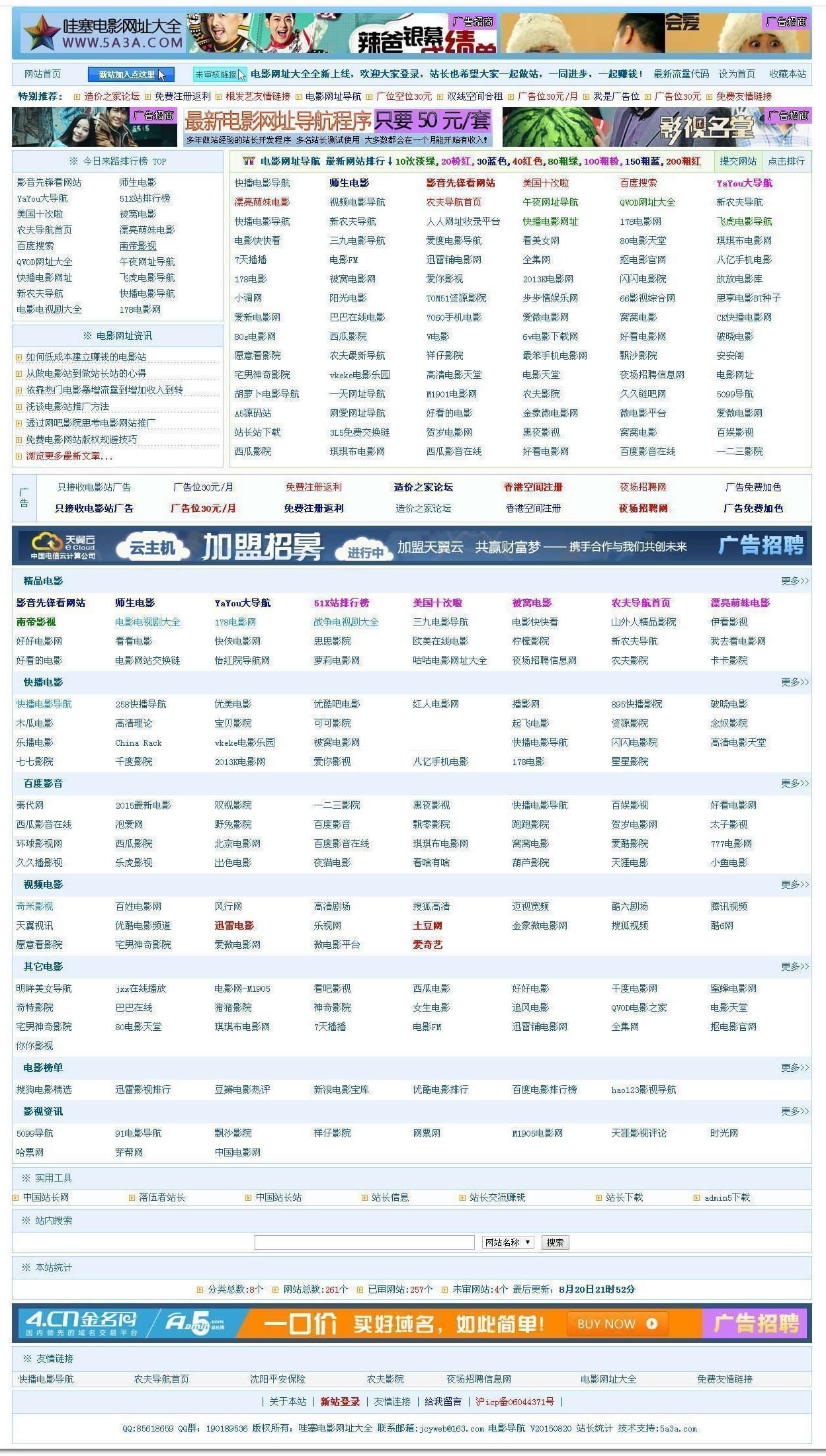 6.申请加入电影网址大全的网站按最后点进的时间排序首页和分类显示链接;