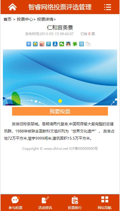 智睿手机Wap投票评选系统20180629更新:1、修正评选详细展示