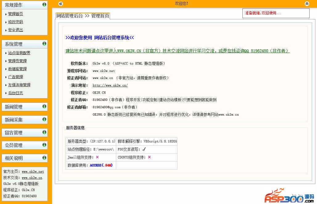 后台路径:admin/login.asp