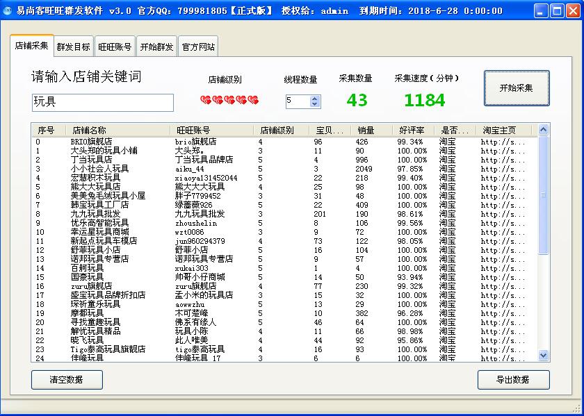 采集旺旺账号 按信誉等级和行业关键词搜索采集