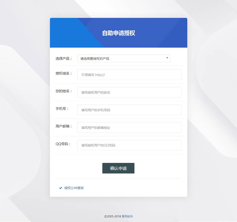 七、用户自助授权申请,后台可设置申请的授权码可试用天数。
