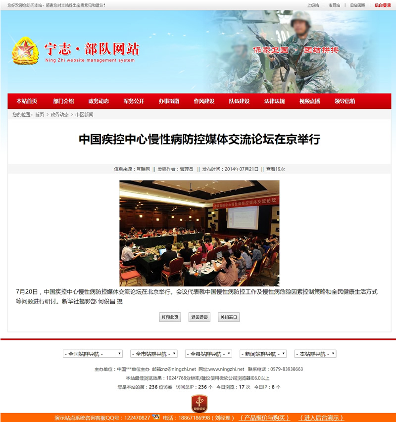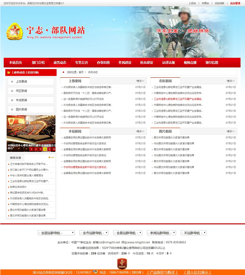 宁志部队网站管理系统一套专为军区部队建站首选的信息网站管理系统,大红色风格宽频页面十分大方。