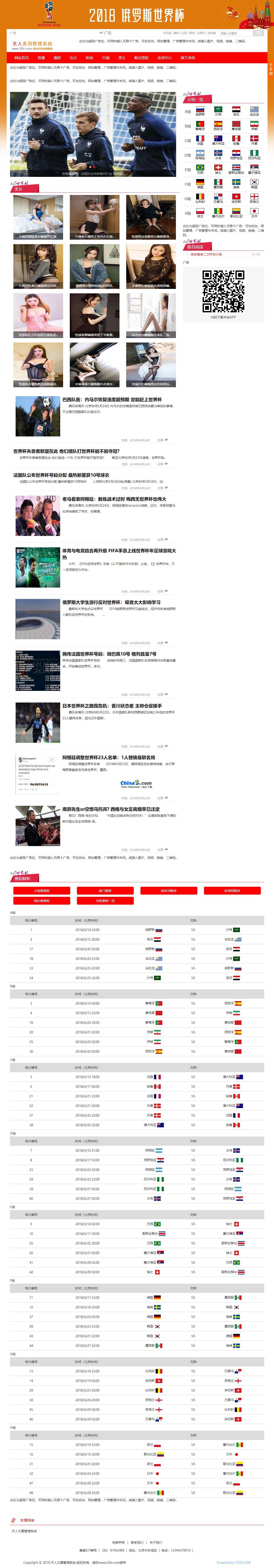 2018俄罗斯世界杯网站源码可应用于世界杯新闻资讯、足球、体育赛事、美女图片等图片、文字、视频、音频类型的网站建设,搜索引擎排名效果好,承载数据量大,承载访问量大,安全性高,功能和模板可通过插件形式扩展。