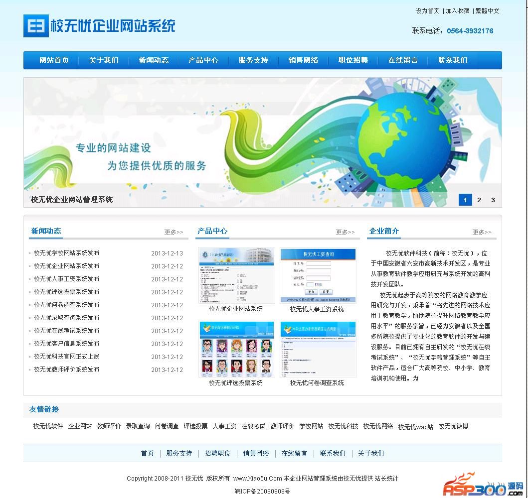 欢迎使用无忧企业网站管理系统标准版,本地电脑IIS环境测试及任何ASP调试软件不能保证本程序功能完整运行,请直接将整个程序包解压后最终目录下面所有文件上传到空间根目录下运行测试,
